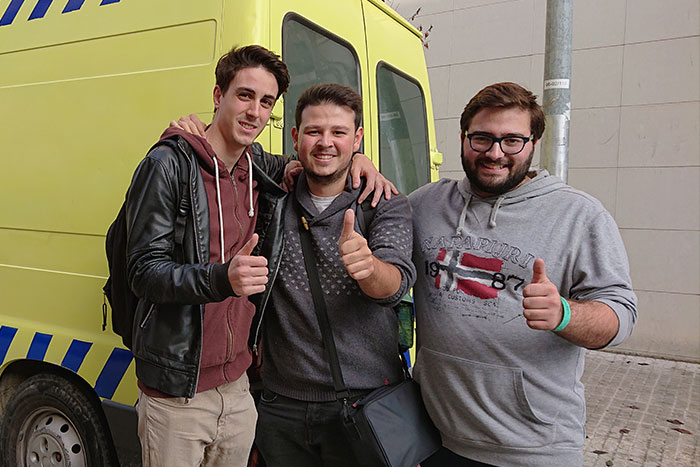 D’esquerra a dreta: Àlex Bru, Manel Salvador i Pau Maza, els tres estudiants de la UPC a Terrassa creadors del sistema que millora la ubicació dels domicilis per a les ambulàncies