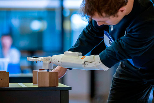 Amb l’experiència d’haver portat diverses pròtesis al llarg de la seva vida per fer activitats com muntar en bicicleta o treballar, Kyle confessa que gaudeix portant la pròtesi desenvolupada per l’equip de l’ETSEIB. L’estudiant ha 'pilotat' la pròtesi d’Arm2U al Cybathon Challenge el 18 de maig passat, a Zurich, Suïssa. En aquesta competició, persones amb discapacitats físiques posen a prova les pròtesis desenvolupades per equips de recerca de l’entorn universitari i empresarial de tot el món, mitjançant la realització de tasques quotidianes, com manipular i transportar objectes o introduir-los en una posició concreta en cubs amb diferents ranures.