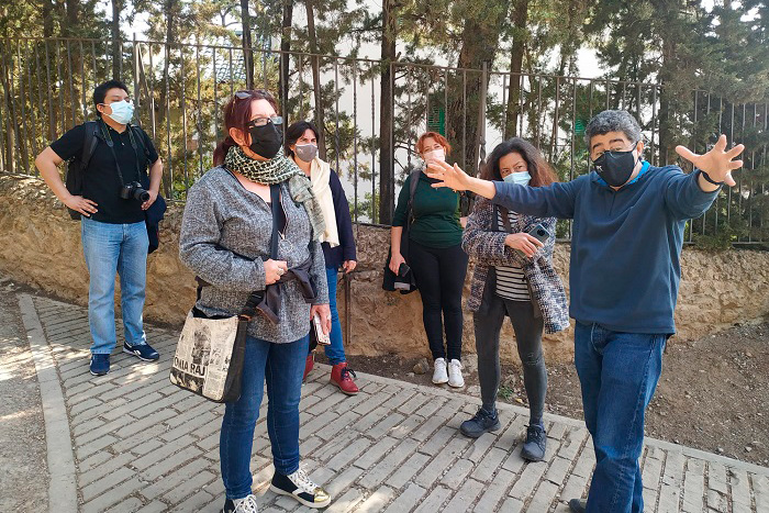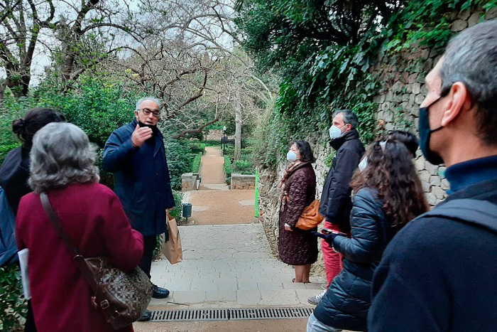 Una instantània de la caminada per Montjuïc, un dels espais protagonistes de les rutes realitzades, en aquest cas guiada per Estanislau Roca