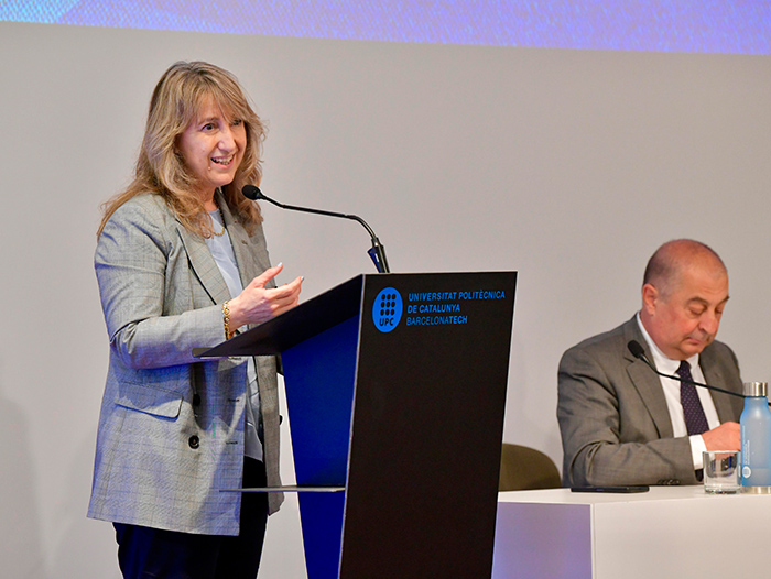 Núria Montserrat també ha recordat la responsabilitat de la universitat pública com a ascensor social, per construir una societat més justa i ha instat la UPC a ser un referent en àmbits de futur com ara la governança digital, el desplegament tecnològic, la intel·ligència artificial o el respecte a la privacitat.
