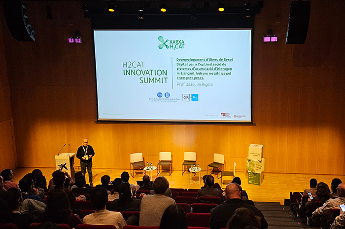 L'investigador Joaquim Rigola ha presentat, com a cas d'èxit, el bessó digital per optimitzar sistemes d’acumulació d’hidrogen mitjançant hidrurs metàl·lics
