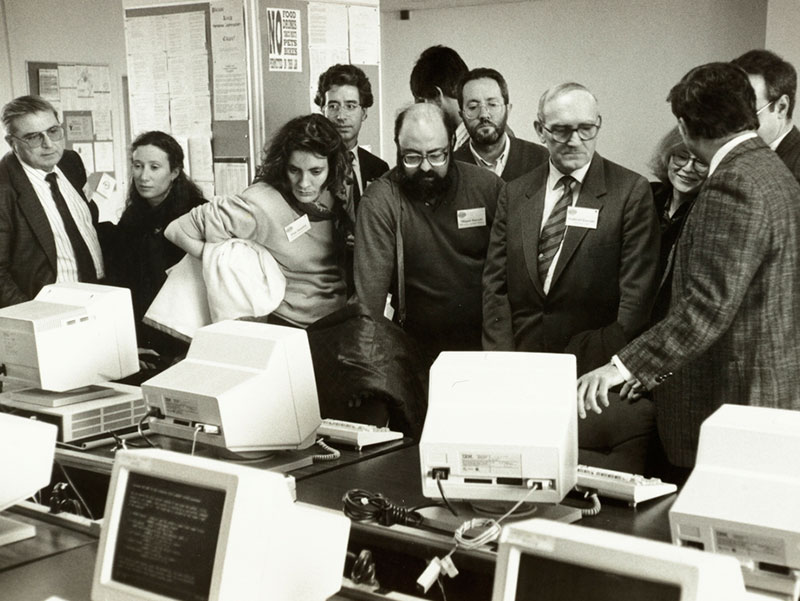 Miquel Barceló, acompanyant el rector Gabriel Ferraté, a la visita que van realitzar el 1991 a Virginia Tech (Estats Units). Font: Memòria Digital UPC