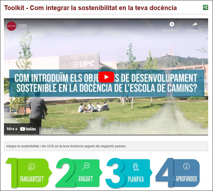 Per aconseguir aquest repte, es proposa una metodologia basada en quatre passos, que permeten al professorat ampliar el seu coneixement sobre els ODS, avaluar les assignatures que imparteixen i planificar la iniciativa docent. Segons expliquen les promotores de la iniciativa, "el projecte, tot i estar desenvolupat en l'àmbit del grau en Enginyeria Civil, ofereix una metodologia clara i estructurada per ser reproduïble i escalable a qualsevol grau de la UPC. Permet a qualsevol docent seguir una seqüència de passos per tal de detectar quines competències en sostenibilitat es treballen en les assignatures, i ofereix exemples i material per crear noves activitats que permetin incorporar i treballar els ODS".