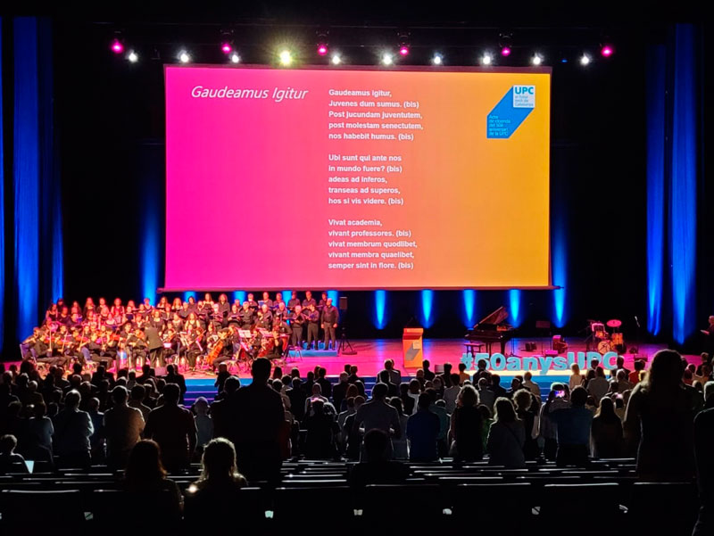 Un acte festiu, que ha congregat la comunitat universitària, així com representants institucionals i d’entitats i empreses, ha clos la commemoració del 50è aniversari de la UPC, el 27 de juny, a l’Auditori del Fòrum, a Barcelona. A més dels diferents parlaments i de diverses interpretacions poètiques i musicals, s'ha fet repàs a algunes de les fites assolides en els darrers anys per aquesta Universitat, que es reivindica com el futur 'tech' de Catalunya.