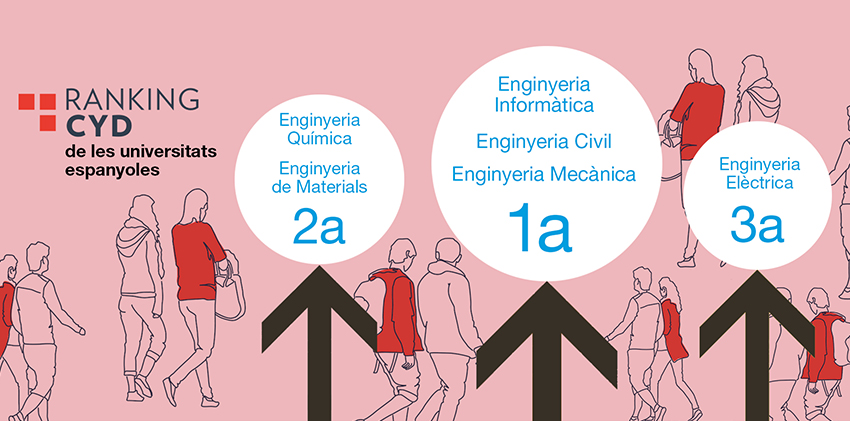 La UPC és líder a Espanya en Enginyeria Informàtica, Civil i Mecànica, i se situa entre les tres millors universitats de l’Estat en Elèctrica, Química i de Materials, segons el Ranking CYD,.