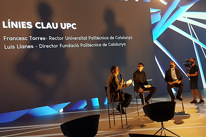 Luís Llanes, director de la Fundació Politècnica de Catalunya (a l'esquerra de la imatge), Jordi Sellas, director executiu d’IDEAL Barcelona (al centre), i Francesc Torres, rector de la UPC (dreta), han iniciat la jornada