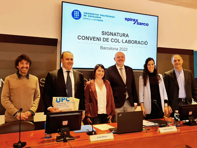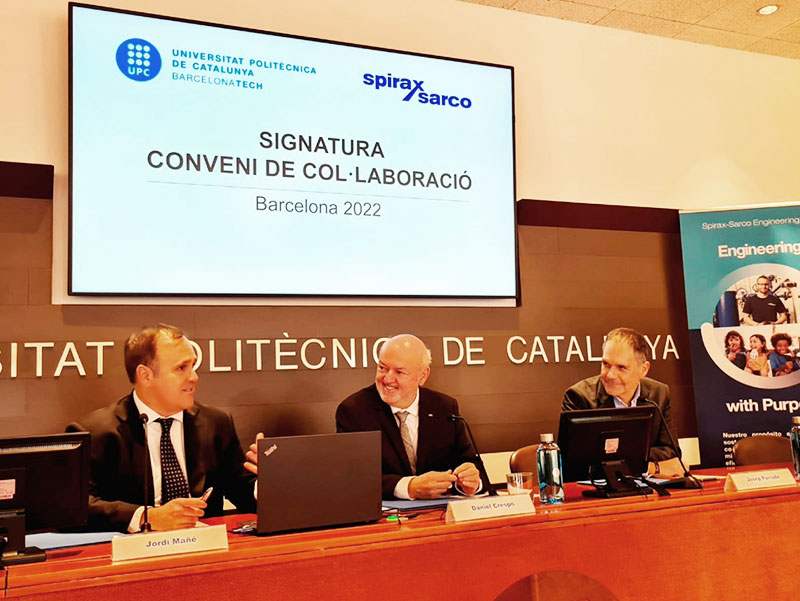 La signatura de l'acord de col·laboració entre la Universitat Politècnica de Catalunya - BarcelonaTech (UPC) i l’empresa Spirax Sarco ha tingut lloc a la Sala de Juntes del Rectorat de la UPC, i ha anat a càrrec de Daniel Crespo, rector de la UPC; Jordi Mañé, gerent regional de la regió nord i sud d’Europa d'Spirax Sarco, i Josep Parrado, responsable del departament de desenvolupament de negoci de la filial espanyola de l’empresa. Tant Mañé com Parrado són també alumni de l'Escola Tècnica Superior d'Enginyeria Industrial de Barcelona (ETSEIB) de la UPC.