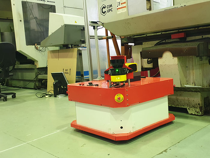 ⮚ Cobots i visió artificial: l'ús d'eines de visió artificial, l’aprenentatge per reforç i una interfície gràfica permeten que els cobots (en aquest projecte, els cobots són la unió d’un vehicle mòbil AGV i un braç robòtic) facin la tasca de càrrega-descàrrega de productes (bin picking) de forma intuïtiva i general. Ho fan a partir de blocs de control parametritzables, tant automàticament com a través de la comunicació amb l’operador. Per millorar la interacció entre persones i robots col·laboratius s’ha dissenyat un aplicatiu d’interacció de càrrega i descàrrega de productes mitjançant el control numèric optimitzat.