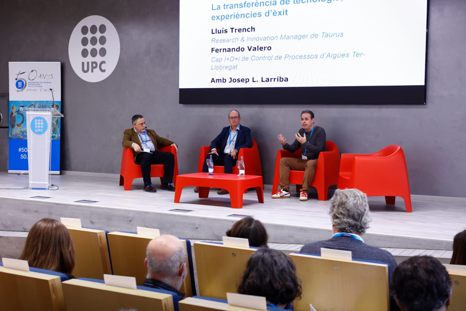 A l’acte hi ha participat Daniel Crespo, rector de la UPC; Lluís Trench, Research and Innovation Manager de Taurus, i Fernando Valero, cap d’R+D+i i de Control de Processos d’Aigües Ter-Llobregat. Tot seguit, ha tingut lloc una taula rodona, presentada per Climent Molins, vicerector de Transferència, Innovació i Emprenedoria de la UPC, i on hi ha participat Fatima Lucas, cofundadora i Chief Executive Officer de Zymvol; Marc Castells, CEO de Basetis, i Laura Gil, directora de Transformació Digital de DAMM. Finalment, Carme Fenoll, cap de l’Àrea de Cultura i Comunitat de la UPC, ha intervingut en representació d'UPC Alumni.