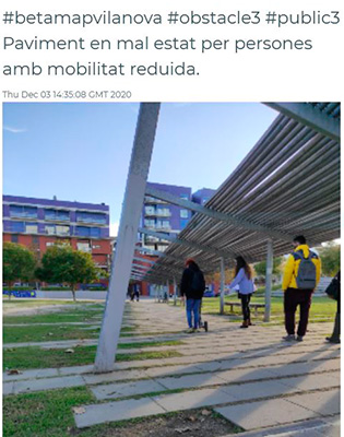 Així, la ‘BETAMapathon' del 2020 ha destacat per ser una acció simultània i col·laborativa a diverses localitats de la província de Barcelona, que ha permès detectar 455 punts crítics a millorar des del punt de vista de l'accessibilitat, que s'han compartit via Twitter i s'han localitzat de manera visible i en temps real en un mapa en línia.