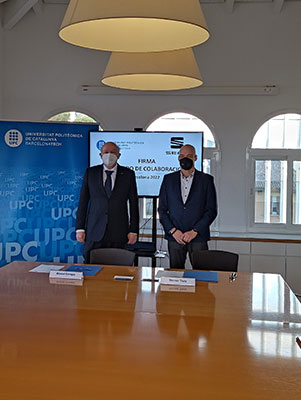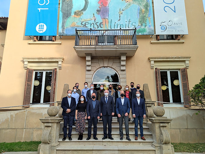 Representants d'ambdues entitats a l'edifici del rectorat de la UPC el dia de la signatura de l'acord