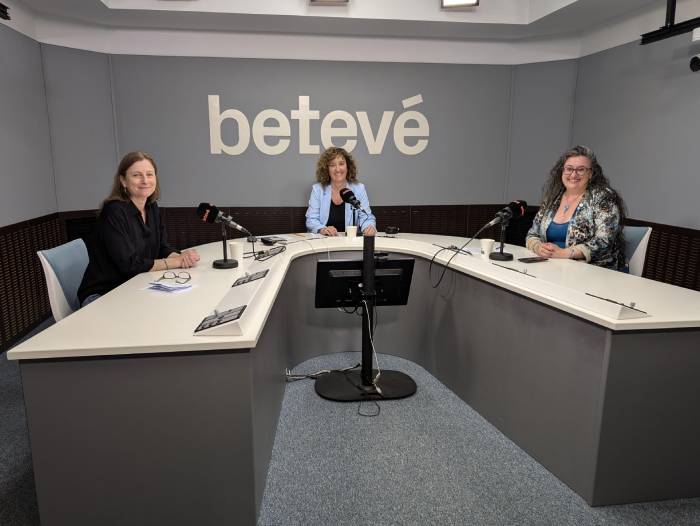 Karina Gibert, Àngela Nebot i Núria Ferré durant la gravació del cinquè episodi de ‘Quanta, quanta IA!’