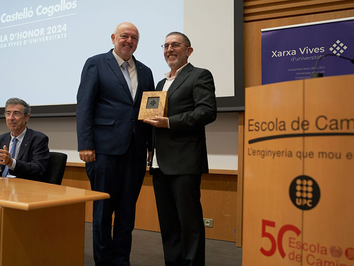 La sala d’actes de l’Escola Tècnica Superior d'Enginyeria de Camins, Canals i Ports de Barcelona (ETSECCPB) de la Universitat Politècnica de Catalunya – BarcelonaTech (UPC) ha acollit l’acte de lliurament de la Medalla d’Honor 2024 de la Xarxa Vives d’Universitats. Els guardonats en aquesta edició han estat l’escriptor Josep Vallverdú, a proposta de la Universitat de Lleida, la lingüista Gemma Rigau, a proposta de la Universitat Autònoma de Barcelona, i el sociòleg Rafael Castelló, a proposta de la Universitat de València. L’acte, que ha estat presidit pel president de la Xarxa Vives i rector de la UPC, Daniel Crespo Artiaga, ha comptat també amb la intervenció del conseller de Recerca i Universitats de la Generalitat de Catalunya, Joaquim Nadal i Farreras. La cerimònia s'ha pogut seguir en directe al canal de Youtube de la Xarxa Vives.