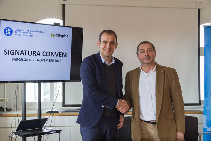 El rector de la UPC, Francesc Torres, i el vicepresident de Montepino, Juan José Vera, han estat els encarregats de signar aquest conveni en un acte al qual també han assistit el director de Càtedra Grup JG Ingenieros de la UPC, Eduard Egusquiza, així com Juan Gallostra, director general de JG Ingenieros Consultores, i Eva Cuerva, professora de la UPC responsable del projecte.