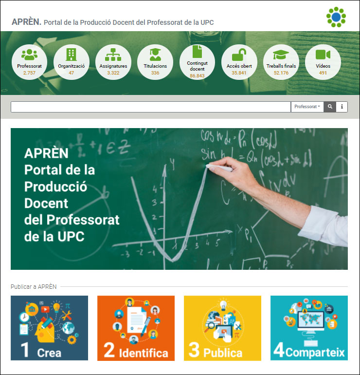 La UPC posa en marxa Aprèn, una nova plataforma que facilita l’accés als continguts elaborats pel professorat de la UPC com a eina de suport a l'activitat docent.
