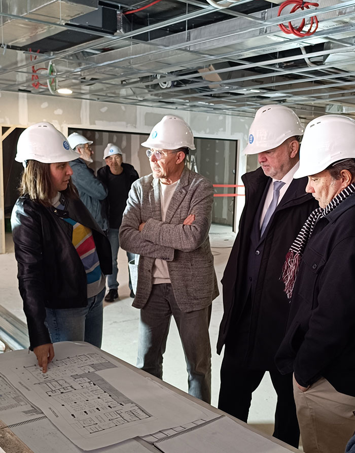 El rector, Daniel Crespo, juntament amb el vicerector d’Arquitectura, Infraestructures i Territori, Jordi Ros, i la vicerectora de Docència i Estudiantat, Anna Mujal, van visitar, el 27 de febrer, les instal·lacions, que segueixen a bon ritme. El Consell de Casal, les delegacions de centre i el Consell de l’Estudiantat també van tenir l’oportunitat de veure l’evolució de les obres la setmana anterior.