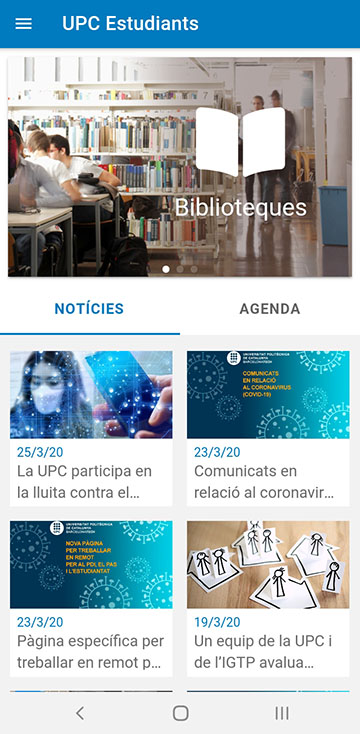 La Universitat Politècnica de Catalunya · BarcelonaTech (UPC) ha llançat la nova aplicació UPC Estudiants, disponible en català, castellà i anglès i que ofereix informació pràctica per al dia a dia a la Universitat. El projecte s'ha avançat en la seva implementació per oferir informació actualitzada durant l’emergència sanitària declarada pel COVID-19.