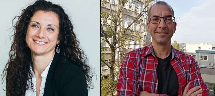 Retrat d’Elena García Armada, investigadora del CAR (CSIC-UPM) i retrat de Jordi Sort Viñas, investigador ICREA del Departament de Física de la UAB