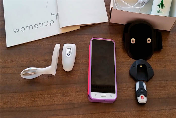 WOMEN-UP, dissenyat per investigadors del Centre de Recerca en Enginyeria Biomèdica (CREB) de la UPC i l’Hospital Clínic de Barcelona en el marc del projecte europeu que porta el mateix nom, està format per tres elements: dos dispositius de bio-feedback sense fils, una aplicació de mòbil amb jocs seriosos (serious games) i una plataforma web. Els dispositius capten les contraccions musculars del sòl pelvià i envien el senyal a l'aplicació per interactuar amb els jocs que serveixen d'entrenament. Els resultats de les sessions que fa la pacient s'envien a la plataforma web, en la qual tant el terapeuta com la pacient poden avaluar la progressió del tractament.