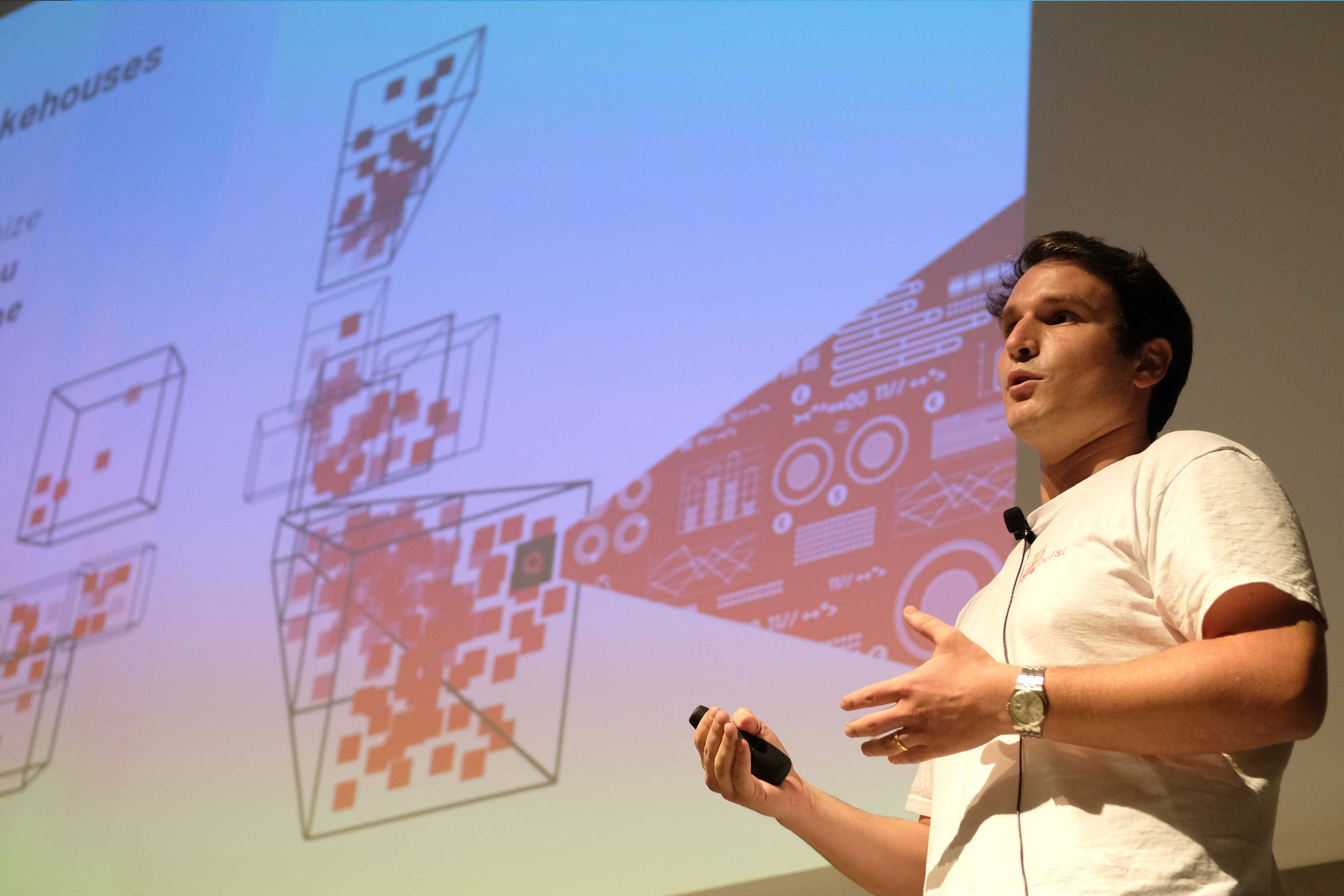 Cesare Cugnasco, investigador del BSC, durant la presentació de QBeast, 'spin-off' del BSC