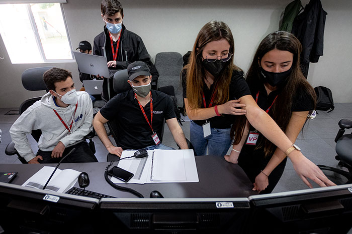 Estudiants de l'associació Cosmic Research de la UPC, en les proves del llançament del coet Bondar