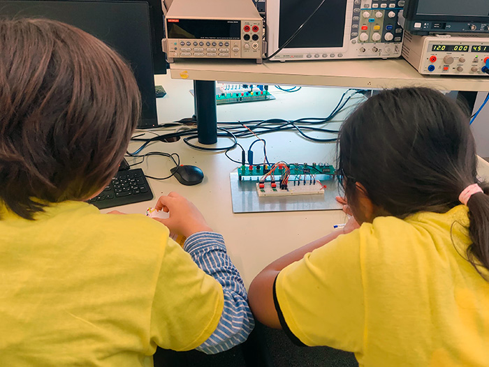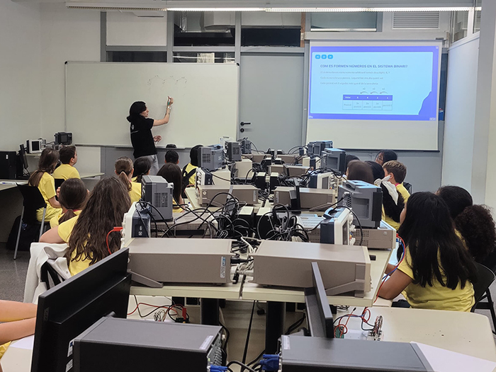 Com funcionen els circuits elèctrics, quina és la diferència entre els nombres decimals i els binaris, o què són les variables booleanes i per a què serveixen, són alguns dels conceptes científics que els alumnes de 5è i 6è de primària han après el 30 d'abril a la Universitat Politècnica de Catalunya - BarcelonaTech (UPC) en el marc del congrés Recerkids. A través de tallers dissenyats i impartits per professors i professores de l'Escola de Telecos (ETSETB) i investigadors i investigadores de la Càtedra CHIP-UPC, els nens i nenes han confeccionat circuits per a una porta lògica, han simulat sumadors humans per entendre el sistema binari i han muntat circuits digitals reals en laboratoris d’electrònica, entre d’altres.
