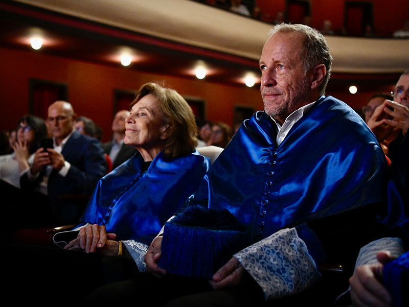 Sylvia Earle i Michel André, en un moment de l'acte d'investidura de l'oceanògrafa com a doctora 'honoris causa' per la UPC