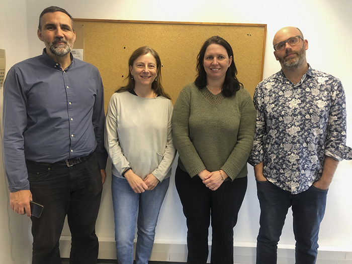 Part de l'equip de la UPC que participa en el projecte, d'esquerra a dreta: Cecilio Angulo, Àngela Nebot, Caroline König i Pedro Jesús Copado. A més, hi participa l'investigador Alfredo Vellido