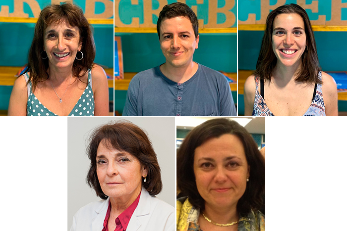 L'equip d'investigació de Virtual Perfusionist: Daniela Tost, Ariel von Barnekow i Núria Bonet, investigadors del CREB de la UPC; Maria Teresa Mata, de l'Hospital Clínic, i Carmen Gomar, de la UB.