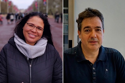 La investigadora Leidy Yanet i l'investigador Miguel Ángel Mañanas, del grup de recerca BIOsignal Analysis for Rehabilitation and Therapy (BIOART) del CREB de la UPC