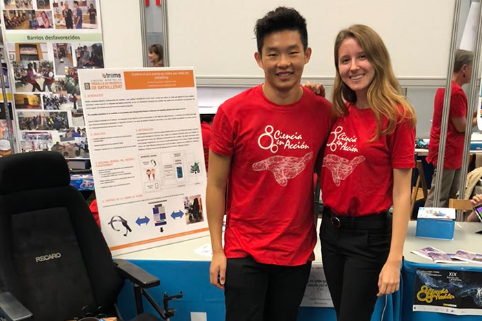 D’altra banda, els estudiants de secundària Clàudia Patel i Lihao Guo, guanyadors del 19è Premi UPC Arquitectura, Enginyeria, Ciències i Tecnologia pel treball Control d'una cadira de rodes per mitjà del parpelleig, han participat al concurs en la categoria de ciència i tecnologia.