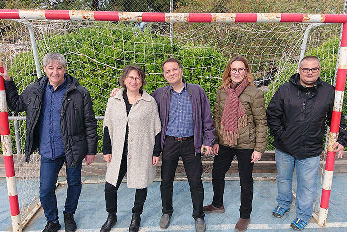 D’esquerra a dreta, els investigadors i investigadores del Campus de la UPC a Terrassa que han elaborat l’estudi: Jordi Marco, Pepa López, Xavier Perramón, Irene Trullàs i Pep Simó