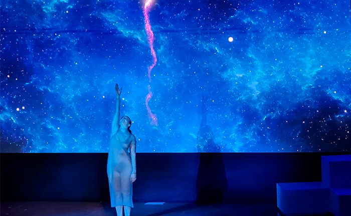 La projecció de diferents mapatges (mapping) i una actuació de dansa contemporània amb la ballarina Ariadna Saltó Mestre han servit també per recordar aquesta mirada polièdrica de Ferraté.