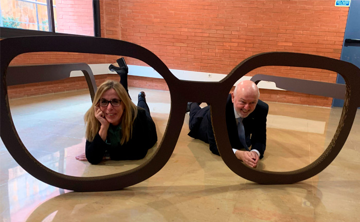 La rectora Àngels Fitó i el rector Daniel Crespo, amb les icòniques ulleres de Gabriel Ferraté