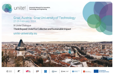 Sota el títol 'Pensa més enllà i crea un impacte sostenible', la comunitat implicada en el desenvolupament de l'aliança Unite!, entre ells membres de la Universitat Politècnica de Catalunya - BarcelonaTech (UPC), participaran al IX Unite! Dialogue, que té lloc a la Universitat Tecnològica de Graz (Àustria) el . En aquesta edició, els organitzadors han posat el focus de la trobada en la visió de futur de l'aliança amb especial accent sobre la importància dels esforços de col·laboració per aconseguir un impacte sostenible en l'educació europea. L'objectiu de les diferents sessions és animar la comunitat de les nous universitats Unite! a explorar solucions innovadores, fomentar el pensament col·lectiu i treballar plegats per abordar els reptes, contribuint a un impacte positiu durador en el panorama de l'educació superior i en la societat en el seu conjunt.