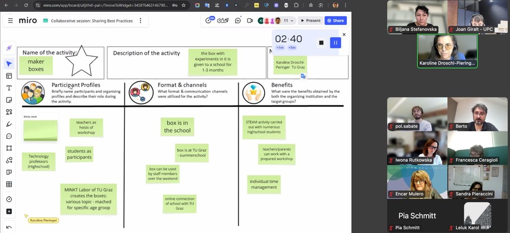 Un dels moments més destacats de la sessió va ser la inspiradora presentació de la professora Núria Salán (UPC), que va compartir la seva àmplia experiència en la construcció de col·laboracions significatives amb centres escolars. Tot seguit, les persones participants van participar en grups de treball col·laboratius on van identificar propostes concretes per reforçar la implicació de Unite! amb les comunitats locals i regionals.