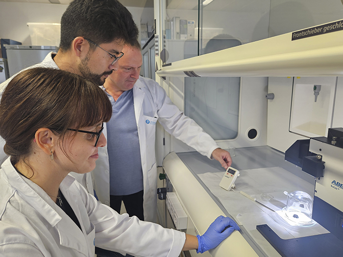 The researchers have applied biocompatible nanoparticles to the surgical mesh that have a theragnostic function, i.e. that combine therapy and diagnosis: they act as bactericides and at the same time they make it possible to detect the implant with less invasive spectroscopy tools, enabling more personalised therapies to meet each patient’s needs. In addition, a self-adhesive mesh requires no staples, tacks or sutures, reducing inflammatory risks.