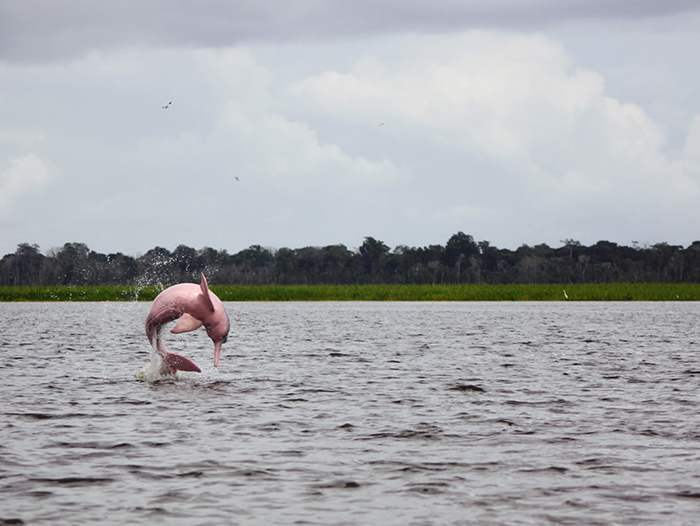 The boto (Inia geoffrensis) or pink river dolphin and the tucuxi (Sotalia fluviatilis) are two species of endangered freshwater dolphins that inhabit inaccessible parts of the Amazon. These species are threatened by human activity related to fishing, agriculture, mining and dam construction. During the wet season—April to August—both dolphin species move into the Amazon seasonal floodplain forests or várzeas in search of freshwater fish. However, flooded fields and vegetation make it extremely challenging to survey dolphins from a boat or using drones.