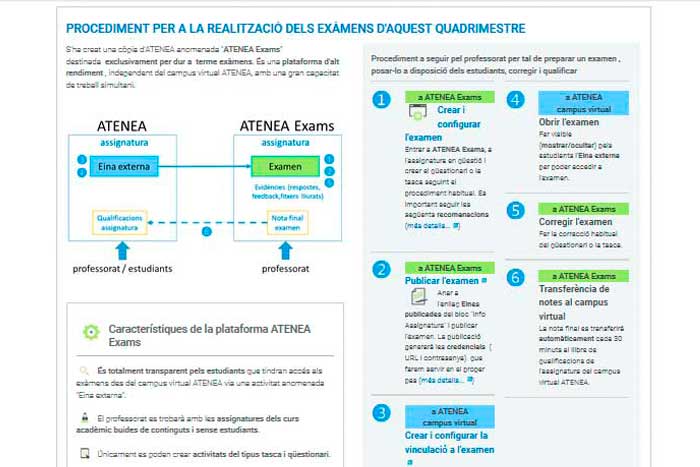 For students it is a completely transparent system and for professors it just means creating the exam in ATENEA Exams or transferring it from Atenea and creating a link in Atenea with the parameters of the exam.