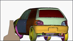Simulation of a car impact test of the crash barrier