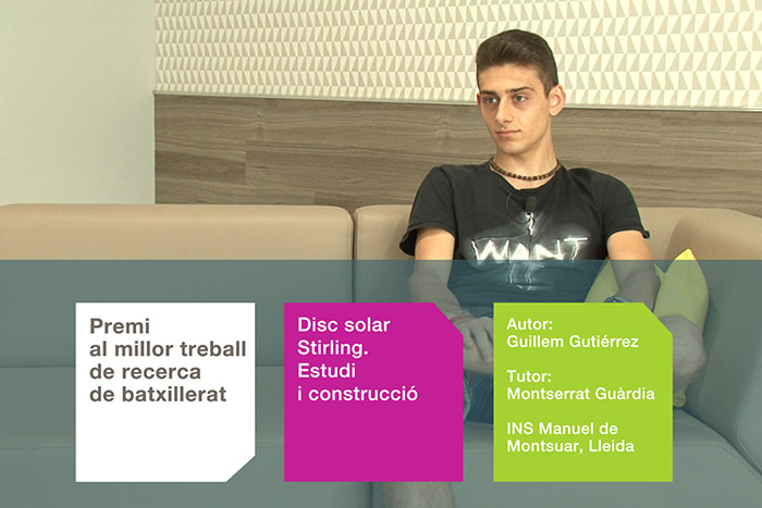 El trabajo Disc solar Stirling. Estudi i construcció, centrado en el estudio del motor Stirling, su funcionamiento y las posibles aplicaciones ha sido el ganador de la 18a edición del Premio UPC en la categoría de trabajos de investigación de bachillerato. Para desarrollar el estudio, Guillem Gutiérrez ha construido un motor Stirling con latas de bebida y de tomate recicladas que funciona con la radiación solar para demostrar que con una mínima tecnología se puede producir energía eléctrica.