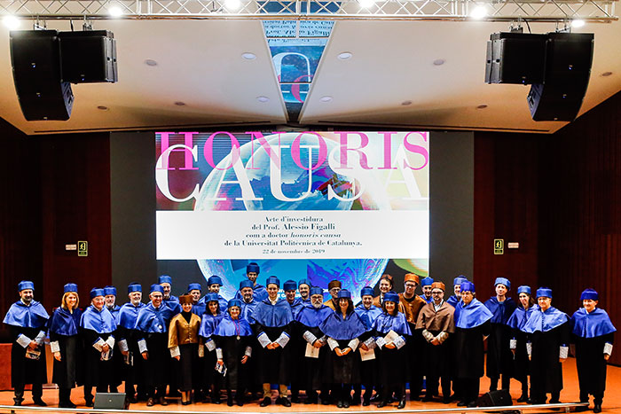 Durante el acto también ha intervenido la Secretaria General de la UPC, Margarida Espona, que ha leído el acuerdo del Consejo de Gobierno por el que se aprobó llevar a cabo este reconocimiento, y ha participado el vicerrector de Política Internacional, Juan Jesús Pérez. Asimismo, ha habido diferentes interpretaciones musicales a cargo de la Orquesta de la UPC y de las corales de Arquitectura, del Parque Mediterráneo de la Tecnología y Gaudeamus EEBE.