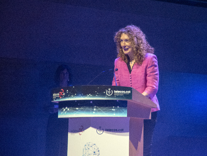 La profesora e investigadora Ana Pérez Neira, directora del CTTC, durante su intervención en la 30a edición de la Noche de las Telecomunicaciones y la Informática