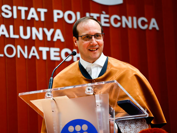 El acto ha contado con la intervención del rector, Daniel Crespo, y del profesor Ferran Marqués, investigador del Departamento de Teoría Señal y Comunicaciones de la UPC y ex director de la Escuela de Telecomunicación de Barcelona (ETSETB), quien ha ejercido de padrino y ha leído los méritos del ingeniero, que investiga en Estados Unidos desde 2001.