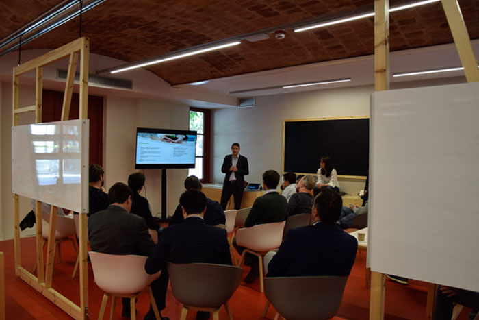 Daniel Serra, de la plataforma CARNET (impulsada por la UPC, SEAT y Volkswagen Group Research), explica a los participantes del 'challence' la necesidad de buscar soluciones para mejorar la movilidad urbana en Barcelona