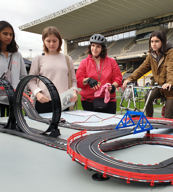 En este mismo eje, también se ha utilizado el Bicing para experimentar en torno a la movilidad responsable y comprobar la energía que se ahorra yendo en bici. En otra de las pruebas, se ha aprovechado la pista del Estadio para correr una carrera de 100 metros lisos y medir, a través de un respirómetro, el CO₂ expirado. Una actividad que ha servido para enlazar los conceptos de energía y de metabolismo.