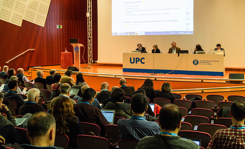 El 23 de octubre, sesión extraordinaria del Claustro Universitario para debatir la respuesta de la UPC con motivo de la sentencia por los hechos de octubre del 2017