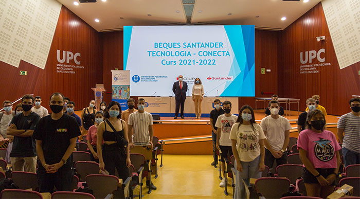 El 15 de septiembre se ha lleva a cabo, en el edificio Vèrtex de la UPC, el acto de entrega de las becas Santander Tecnología / Conecta, convocadas por primera vez por Banco Santander y Crue Universidades Españolas y que tienen como finalidadad contribuir a paliar las carencias digitales en el sector educativo universitario.