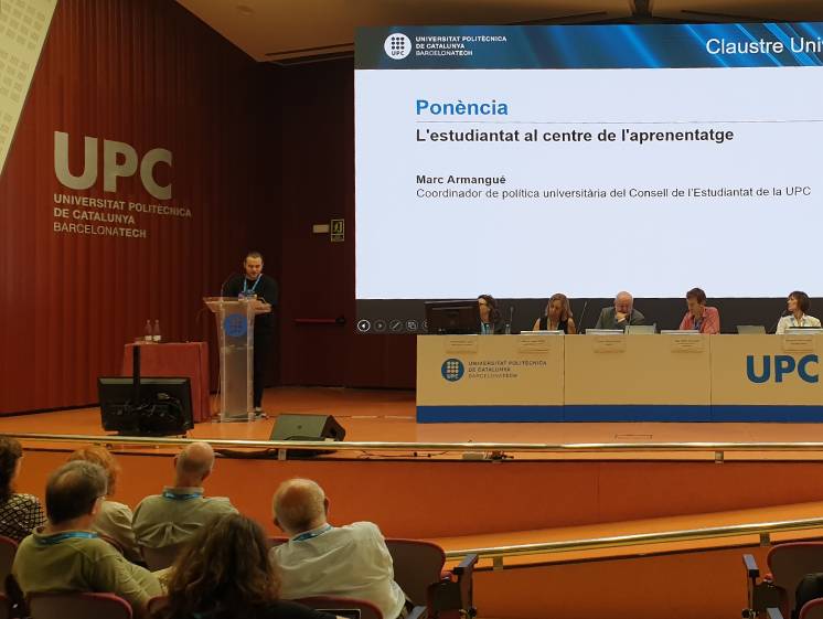 Por su parte, el estudiante Marc Armangué, coordinador de Política Universitaria del Consejo del Estudiantado de la UPC, ha hablado del estudiantado como centro del aprendizaje. Ha dicho que "la Universidad debe hacer un cambio y que es imprescindible contar con las aportaciones del estudiantado". También ha remarcado la necesidad de recursos para los estudiantes que no pueden tener acceso a las nuevas tecnologías, así como flexibilizar los horarios para los estudiantes que trabajan. Armangué también se ha referido a la sobreexigencia que requieren los estudios y, por otra parte, ha afirmado que es necesario que el PDI se forme para adaptarse a los cambios.