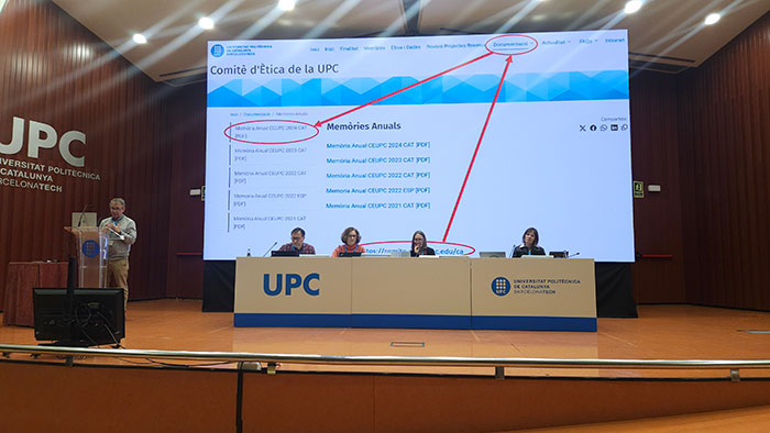En la misma sesión, se han presentado el Informe de la Sindicatura de Greuges 2024, a cargo de la síndica de greuges (defensora universitaria) Anna Serra Tort, y el Informe sobre las actividades del Comité de Ética durante el 2024, por parte del delegado del rector adjunto al Vicerrectorado de Investigación, Jordi Cortadella. Así mismo, la vicerrectora de Responsabilidad Social e igualdad de la UPC, Josefina Antonijuan, ha explicado el Informe anual de seguimiento y evaluación del Protocolo de prevención y actuación ante situaciones de violencia, discriminación y acoso (excepto acoso laboral) de la UPC del año 2024.